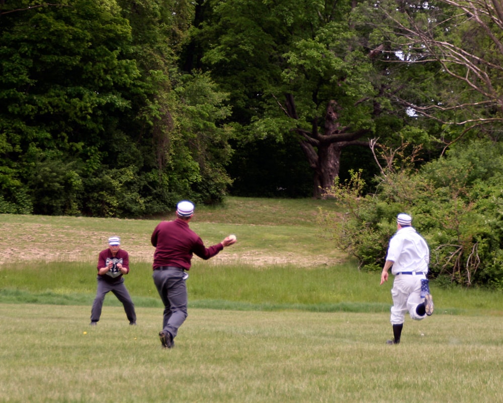 I can’t imagine trying to catch a hit ball without a glove, but these players do it regularly, every season as they play vintage base ball by the rules of 1867.