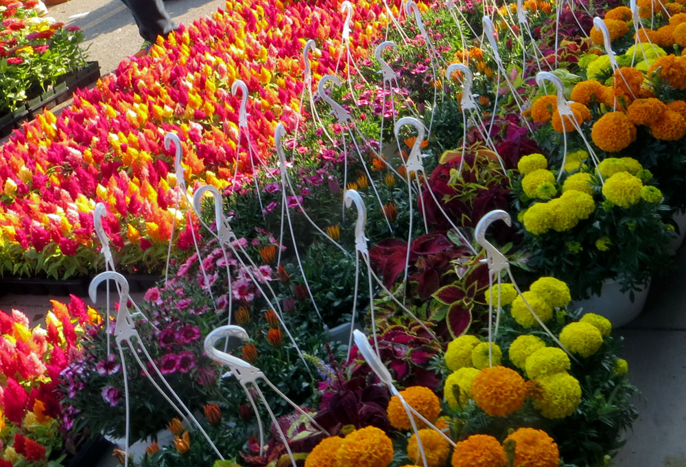 But today, Flower Day at Eastern Market in Detroit resembled a tightly-packed sardine can of people, vendors, wagons, and push carts making their way through the aisles of plants.